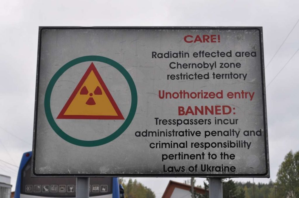 Οι ξεθωριασμένες κίτρινες πινακίδες, οι οποίες προειδοποιούσαν για τον κίνδυνο ραδιενέργειας, σκουριάζουν, αλλά το μήνυμα είναι πάντα το ίδιο: πρόκειται για «Απαγορευμένη Ζώνη», για μια σημαντικά μολυσμένη περιοχή. Η τοποθεσία γύρω από τον χώρο του ατυχήματος χωρίστηκε σε τέσσερις ομόκεντρες ζώνες, ανάλογα με το βαθμό επικινδυνότητας. Κάθε οικιστική, πολιτική και επαγγελματική δραστηριότητα είναι απαγορευμένη και ποινικοποιημένη μέσα στην τέταρτη και πιο επικίνδυνη ζώνη, ακτίνας 30 χιλιομέτρων