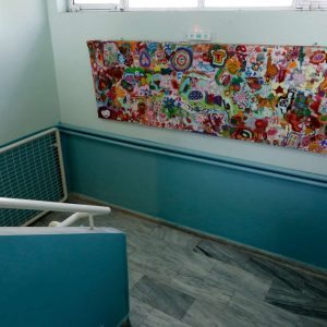 Το επισκέφθηκα ένα μεσημέρι, την ώρα που σχολούσαν τα παιδιά κι ενώ προετοιμάζονταν οι δραστηριότητες για τους μαθητές του ολοήμερου. Το σχολείο βρίσκεται σε ένα προνομιούχο σημείο, σε μια γειτονιά της Χαριλάου κοντά σε παλιό ρέμα (στον «Κήπο του Καλού»), δίνοντας την αίσθηση ότι είναι πνιγμένο στο πράσινο –ενώ δεν είναι. Oμως, υπάρχει σχετική άπλα, με αποτέλεσμα να είναι το περιβάλλον ιδιαιτέρως ευχάριστο.