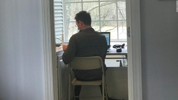 ΥΓ. Το CNN Businness δημοσίευσε φωτογραφίες αναγνωστών του, οι οποίοι θέλησαν να μοιραστούν τους ευφάνταστους χώρους εργασίας που έστησαν μέσα στα σπίτια τους, τώρα που αναγκάστηκαν να δουλεύουν από εκεί. Καρεκλάκια μωρών, κάδοι άπλυτων ρούχων, μπαρ, ακόμα και σιδερώστρες έχουν επιστρατευτεί για γραφεία. Ο κύριος της φωτογραφίας έχει στήσει το γραφείο του στο μπάνιο.
