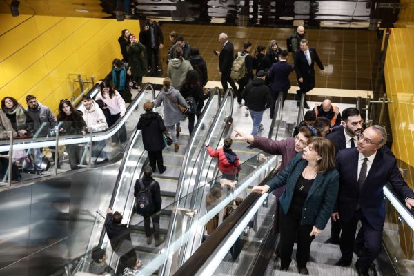 Στον πρώτο συρμό επιβιβάστηκε η Πρόεδρος, ο Πρωθυπουργός και οι υπουργοί Μεταφορών και Πολιτισμού. Στον επόμενο, τα υπόλοιπα μέλη της κυβέρνησης και οι «επίσημοι» προσκεκλημένοι των εγκαινίων.