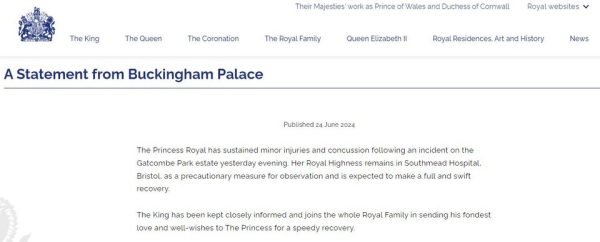 «Ο βασιλιάς ενημερώθηκε λεπτομερώς και μαζί με την υπόλοιπη βασιλική οικογένεια στέλνει τις θερμότερες ευχές του στην πριγκίπισσα για ταχεία ανάρρωση», προστίθεται στην ανακοίνωση.
