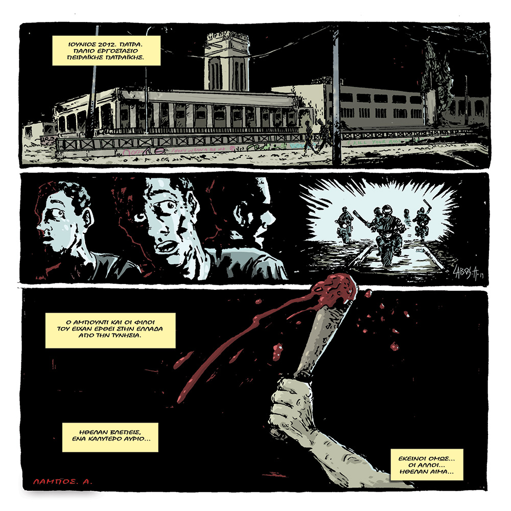Τελικός σταθμός του: η δικαστική αίθουσα, όπου σκιτσογράφοι από την Ελλάδα και το εξωτερικό σχεδίασαν τις απολογίες των ηγετικών στελεχών της Χρυσής Αυγής. Τόσο οι επιθέσεις, όσο και οι απολογίες έχουν συμπεριληφθεί άλλωστε στο λεύκωμα «Βάλ’ τους Χ – Ο μαύρος χάρτης της ρατσιστικής βίας» που κυκλοφορεί από τις εκδόσεις «Τόπος» και το οποίο θα μπορεί να προμηθευτεί το κοινό κατά τη διάρκεια της έκθεσης. Ολα τα έσοδα του λευκώματος διατίθενται για την υποστήριξη των δικηγόρων της πολιτικής αγωγής στη δίκη της Χρυσής Αυγής.