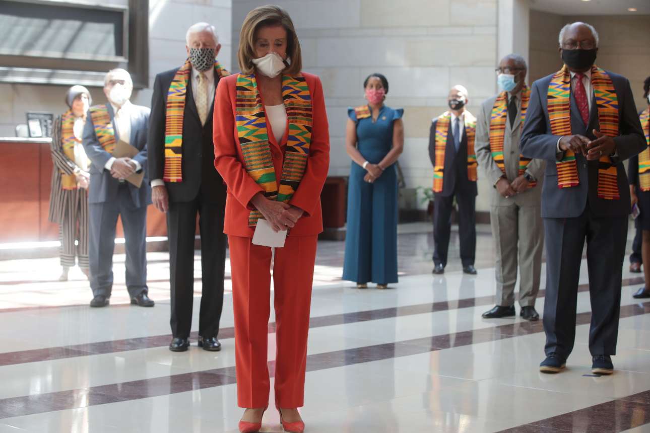 Η Νάνσι Πελόζι, η πρόεδρος της αμερικανικής Βουλής, βουλευτές και γερουσιαστές των Δημοκρατικών τήρησαν ενός λεπτού σιγή και διάβασαν τα ονόματα ανθρώπων, όπως ο Φλόιντ, που σκοτώθηκαν από την αστυνομία.