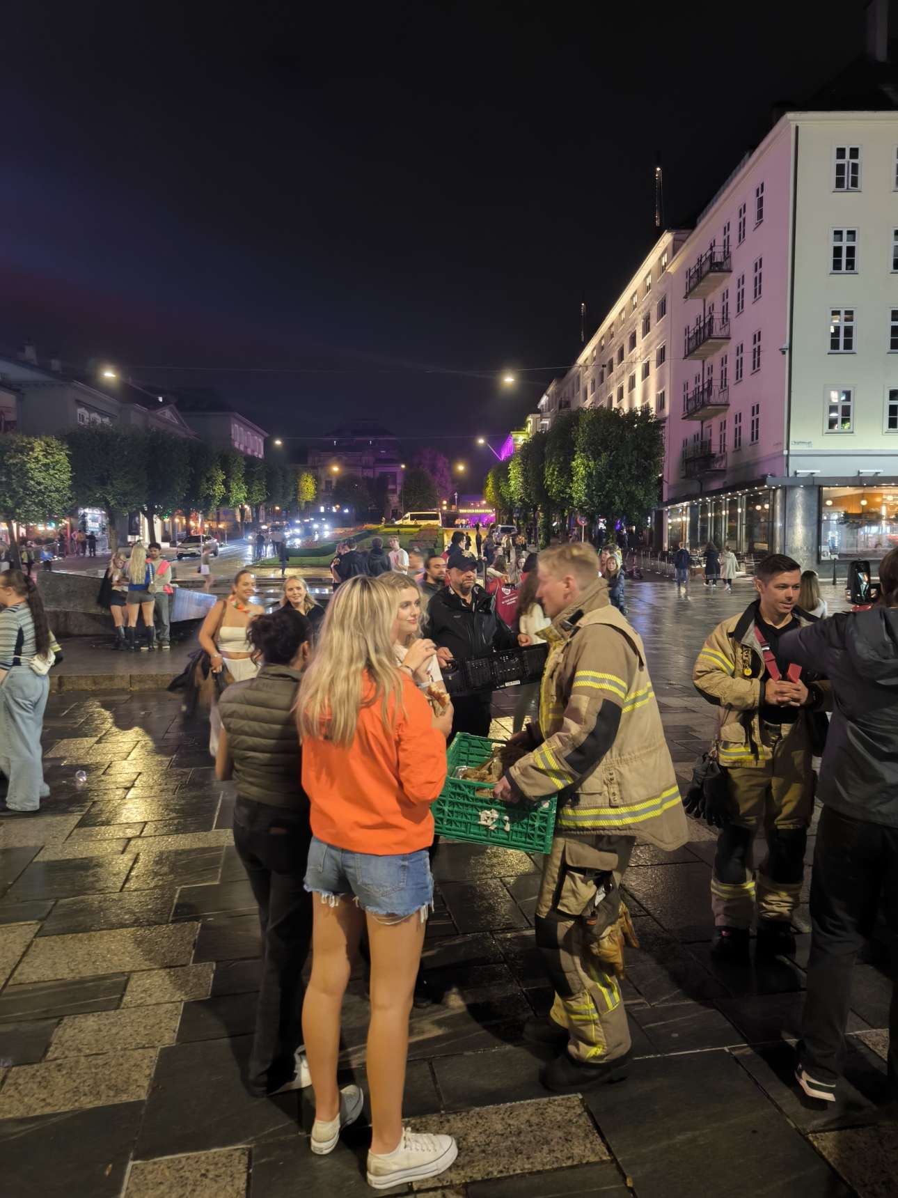 Η πανέμορφη πόλη, λοιπόν, τα βράδια του Αυγούστου άνοιγε τις αγκάλες της για να υποδεχτεί τα πρώτα μεθύσια των νορβηγών φοιτητών. Περπατώντας και χαζεύοντας τον γενικό χαμό σε μια κατά τ’ άλλα άρτια οργανωμένη πόλη, είδαμε από μακριά ένα πυροσβεστικό να στέκει με αναμμένο τον φάρο στη μέση της κεντρικής πλατείας. Φτάνοντας εκεί δεν πέσαμε πάνω σε μάνικες, αλλά σε τελάρα με φαγητό.