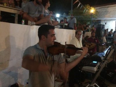 Μικρό, γλυκό πανηγυράκι, είμαστε δεν είμαστε 400 ψυχές, αμφίβολες ως προς τη σωτηρία τους. Και μετά τα όργανα. Ενα λαούτο, ένα βιολί και στη μέση το σινθεσάιζερ που χειρίζεται ο επικεφαλής, ένας κύριος φτυστός ο Στέλιος ο Παππάς.
