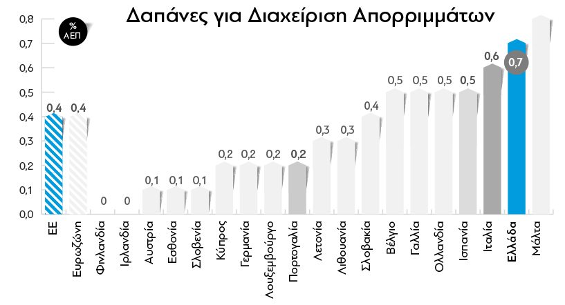 Και για το περιβάλλον δαπανούμε τα περισσότερα στην Ευρωζώνη! Ο κοινοτικός μ.ό. για περιβαλλοντικές δαπάνες είναι 0,8% του ΑΕΠ και η Ελλάδα ξοδεύει τα διπλά (1,6%)!