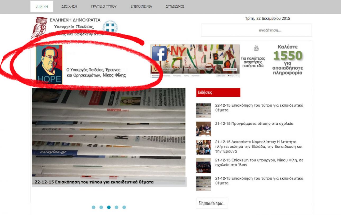 Άλλαξε πάλι το σκίτσο του ο Νίκος Φίλης στο site του υπουργείου Παιδείας