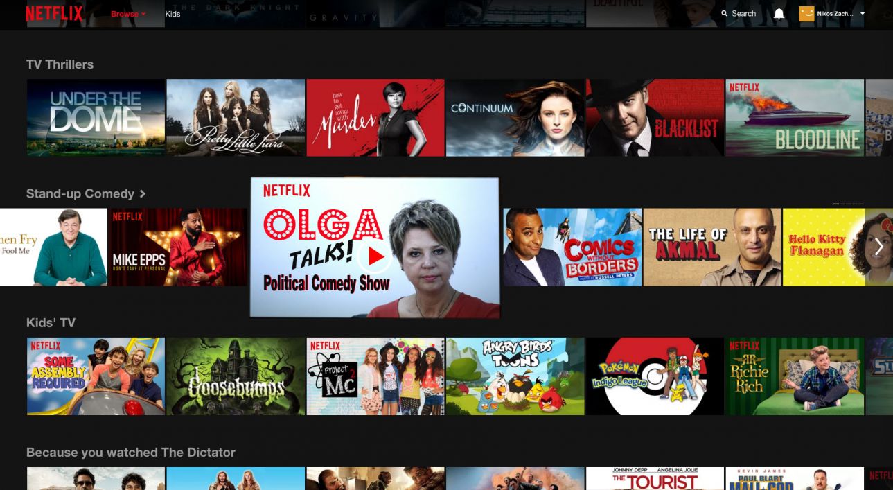 Οι πολιτικές παρεμβάσεις της κυβερνητικής εκπροσώπου – ειδικά αυτές που αναπαράγει τα non papers του Μεγάρου Μαξίμου, βρίσκονται στην κατηγορία της Stand Up Comedy με τον τίτλο «Olga Talks» και θεωρείται ότι θα αποζημιώσουν τους συνδρομητές για την απουσία γνωστών σειρών της πλατφόρμας, όπως το House of Cards ή το Game of Thrones.