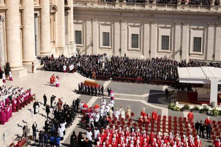 Το πλήθος που ήταν συγκεντρωμένο στην πλατεία του Αγίου Πέτρου για την κηδεία του Πάπα Φραγκίσκου, ξέσπασε σε χειροκροτήματα σε αρκετά σημεία του επικήδειου λόγου που εκφώνησε ο καρδινάλιος Τζιοβάνι Βατίστα Ρε.
