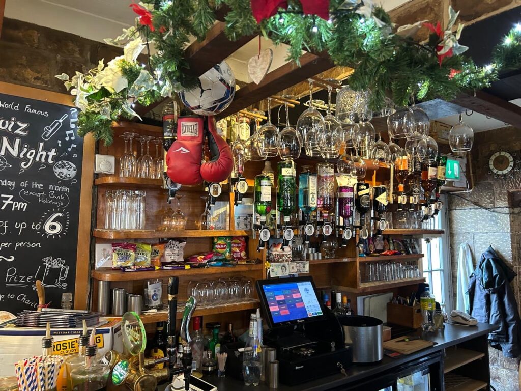 Και βέβαια, σε κάθε χωριό απολαμβάναμε την κάθε παμπ. Αλλωστε η παμπ είναι, η δική μας «πλατεία». Εκεί συναντιούνται οι άνθρωποι, εκεί γελάνε, εκεί σχολιάζουν, εκεί γεμίζουν τη μοναξιά τους. Λατρεύω την ατμόσφαιρα των εγγλέζικων παμπ. Ιδίως σε εκείνο το χωριό των ελάχιστων κατοίκων. Είχε χιονίσει. Χτυπούσαν οι καμπάνες ρυθμικά, περπατήσαμε στο νεκροταφείο τους, έχουμε και τα κουσούρια μας, δίπλα ακριβώς στους τάφους και ένας κόκκινος τηλεφωνικός θάλαμος. Με μια ταμπέλα: «Καλέστε κάποιον φίλο σας για να κρατήσουμε ζωντανούς τους θαλάμους».