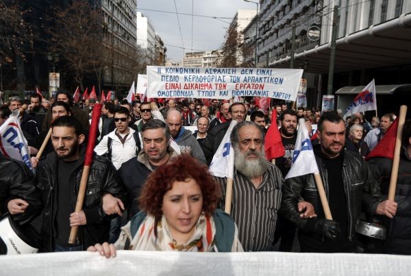 More than 45.000 people marched to Parliament to protest over social security bill during today's strike. #Greece pic.twitter.com/D0rKLcc59N