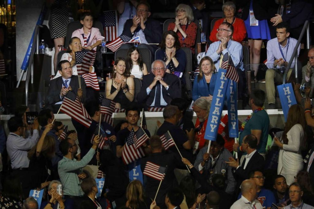 Η αναφορά στους άστεγους ψηφοφόρους δεν ήταν τυχαία. Μόλις λίγες ώρες πριν από τη φιέστα της τελευταίας βραδιάς του συνεδρίου, ο Μπέρνι Σάντερς ανακοίνωσε ότι επιστρέφει στο Βερμόντ ως ανεξάρτητος, διαχωρίζοντας τη θέση του από το Δημοκρατικό Κόμμα. Ο ίδιος βέβαια έσπευσε να συγχαρεί και πάλι τη Χίλαρι Κλίντον και να πει ότι «είμαστε πιο δυνατοί μαζί», ενώ χαρακτήρισε τον Τραμπ ως τον «χειρότερο ρεπουμπλικανό προεδρικό υποψήφιο στη σύγχρονη ιστορία των ΗΠΑ».