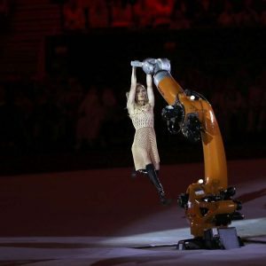 To μήνυμα ήταν αυτό της συμμετοχής, όχι μόνο στον αθλητισμό, αλλά στην κοινωνική ζωή, παντού. Μια εντυπωσιακή βραζιλιάνα καλλονή, με προσθετικά μέλη στα πόδια έδωσε ένα συγκλονιστικό σόου με ένα ρομπότ.