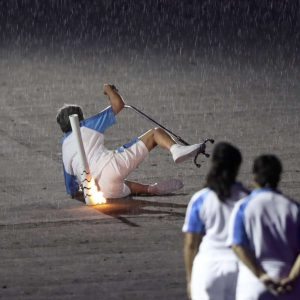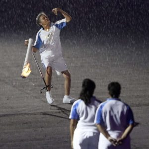 Δεν ήταν μια καλή αθλητική φιέστα, ούτως ή άλλως. Εβρεχε καταρρακτωδώς. Μια λαμπαδηδρόμος έπεσε. Ο κόσμος στις εξέδρες αν δεν αποδοκίμαζε τον Τέμερ, παρακολουθούσε τουλάχιστον αμήχανος. Τουλάχιστον η γενναία προσπάθεια της λαμπαδηδρόμου που κατάφερε και να ξασηκώθηκε ζέστανε τις καρδιές των θεατών που καταχειροκρότησαν την προσπάθεια.