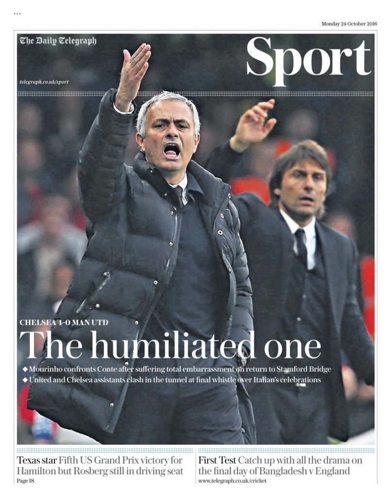 Τα αθλητικά οπισθόφυλλα των βρετανικών εφημερίδων τη Δευτέρα. Ο εξευτελισμός του Μουρίνιο…