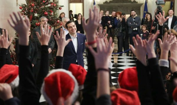 Λίγα μέτρα πιο πάνω, στο Μέγαρο Μαξίμου,το χριστουγεννιάτικο κλίμα μετέφεραν οι μαθητές του Μουσικού Σχολείου Αθήνας οι οποίοι είπαν τα κάλαντα στον Αλέξη Τσίπρα.