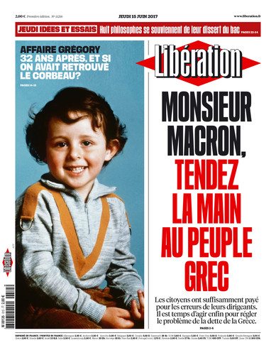 Το πρωτοσέλιδο και το κύριο άρθρο της Liberation, στο φύλλο της Πέμπτης, είναι αφιερωμένο στην Ελλάδα. Με αφορμή την πρόσφατη επίσκεψη του υπουργού Οικονομικών, Μπρουνό Λεμέρ, στην Αθήνα -η εφημερίδα συνοδεύει το κείμενο με τη φωτογραφία από τη συνάντηση με τον Αλέξη Τσίπρα- και ενόψει της κρίσιμης συνεδρίασης του Eurogroup στο Λουξεμβούργο, η γαλλική εφημερίδα τοποθετείται υπέρ της ελάφρυνσης του ελληνικού χρέους και καλεί τον γάλλο πρόεδρο Εμανουέλ Μακρόν να «παίξει έναν αποφασιστικό ρόλο στην ιστορία της ΕΕ».