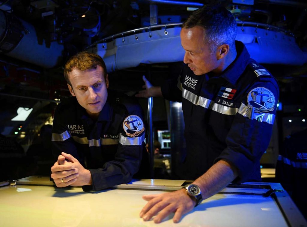 Η επιλογή άλλωστε του υποβρυχίου ήταν χαρακτηριστική. Ο Μακρόν επιβιβάστηκε στο υποβρύχιο «Le Terrible» («Ο Τρομερός») το οποίο την Τρίτη έπλεε στον Ατλαντικό Ωκεανό, περίπου 200 μίλια από τις ακτές της Βρετάνης.