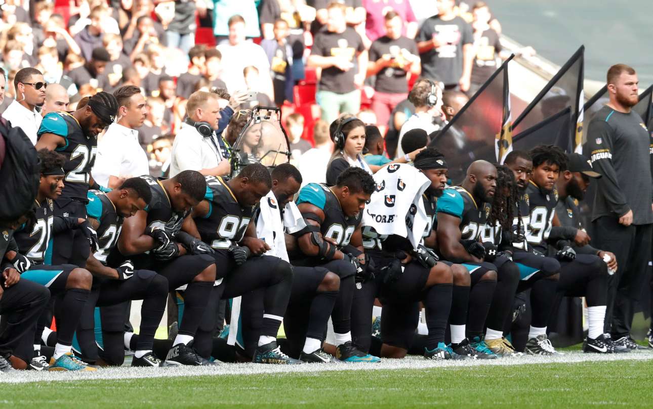 Τα αμερικανικά τηλεοπτικά δίκτυα έδειξαν στιγμιότυπα από στάδια σε ολόκληρη τη χώρα, με παίκτες γονατισμένους στο χορτάρι του αγωνιστικού χώρου, λίγες ώρες αφότου ο αμερικανός πρόεδρος κλιμάκωσε τη ρητορική του ζητώντας μποϊκοτάζ των ομάδων οι παίκτες των οποίων δείχνουν έλλειψη σεβασμού προς την Αμερική.