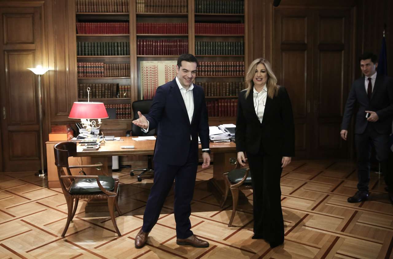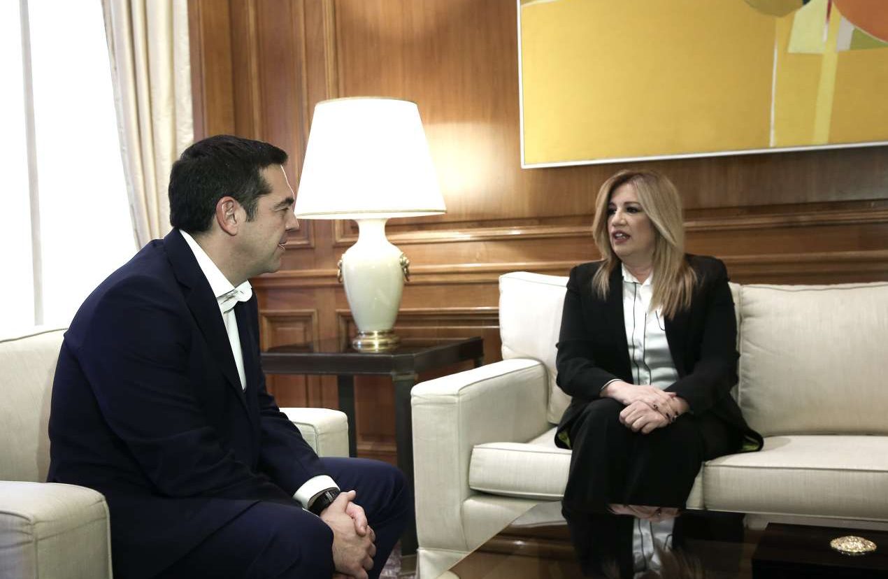 Σε πιο χαλαρό κλίμα εκτυλίχθηκε η συνάντηση του Αλέξη Τσίπρα με την Φώφη Γεννηματά σε σχέση με αυτήν του Πρωθυπουργού με τον Κυριάκο Μητσοτάκη. Οι δύο τους μάλιστα συζήτησαν για πάνω από μία ώρα, με αποτέλεσμα ο Δημήτρης Κουτσούμπας, με τον οποίο το ραντεβού είχε οριστεί στις 13:30, να φτάσει στο Μέγαρο Μαξίμου και να περιμένει να αποχωρήσει η πρόεδρος του ΠΑΣΟΚ, προκειμένου να ξεκινήσει η δική του συνάντηση με τον πρωθυπουργό.
