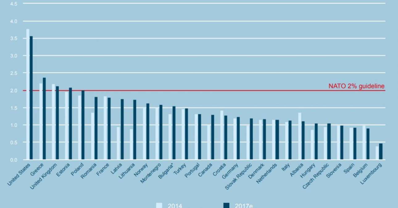 Αποτελεί γεγονός ότι 23 από τις 29 χώρες-μέλη της Συμμαχίας δαπανούν για την άμυνά τους λιγότερο από το 2% επί του ΑΕΠ που προβλέπεται ως κατώτατο όριο. Ο εν λόγω στόχος καθορίστηκε στη Σύνοδο Κορυφής της συμμαχίας στην Ουαλία το 2014 και θα πρέπει να επιτευχθεί έως το 2024. Εως σήμερα τις υποχρεώσεις τους τηρούν μόνον η Ελλάδα (πρώτη και καλύτερη μετά τις ΗΠΑ), η Πολωνία, η Βρετανία, η Εσθονία και η Ρουμανία, ενώ οι Αμερικανοί ξοδεύουν τα περισσότερα, δαπανώντας 3,61% επί του ΑΕΠ.