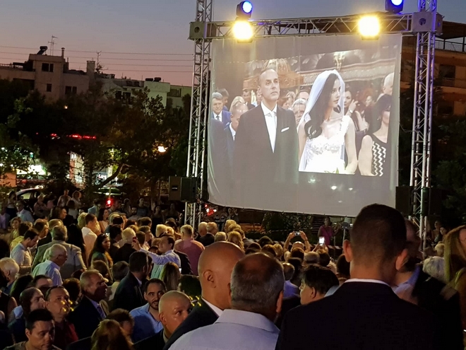 Γράφτηκε ότι περισσότεροι από 5.000 δημότες, φίλοι και συγγενείς ήταν παρόντες στην εκκλησία του Αγίου Κωνσταντίνου και δεν είναι υπερβολή. Είχε στηθεί μέχρι και πανί για να παρακολουθούν το μυστήριο όσοι δεν χώρεσαν στο εσωτερικό του ναού –θα είχε ενδιαφέρον να μάθουμε αν ήταν δημοτικοί υπάλληλοι εκείνοι που έστησαν τις εκατοντάδες καρέκλες, αλλά πάλι κι αυτοί θα ήταν καλεσμένοι, οπότε ας είναι.