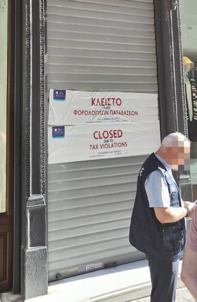 Σε… τουριστική ατραξιόν μετατράπηκε η βιτρίνα γνωστού καταστήματος ρούχων (πολυεθνικής αλυσίδας) στην οδό Ερμού, δυο τετράγωνα κάτω από Σύνταγμα, όχι όμως για κάποιο ευφάνταστο στήσιμο, αλλά για τα μπάνερ που τοποθετήθηκαν από τους ελεγκτές της Ανεξάρτητης Αρχης Δημοσίων Εσόδων, ενημερώνοντας το κοινό ότι λόγω φορολογικών παραβάσεων η πολυόροφη εμπορική επιχείρηση θα παραμείνει κλειστή για δύο 24ωρα.