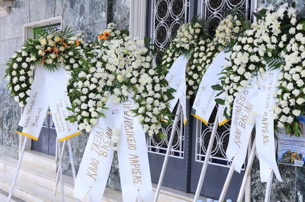 Στεφάνια έστειλαν μεταξύ άλλων η Ενωση Δικαστών και Εισαγγελέων, η Πρόεδρος και οι δικαστές του Αρείου Πάγου, η Εισαγγελία Πρωτοδικών Λάρισας, ο Δικηγορικός Σύλλογος Λάρισας κ.α..
