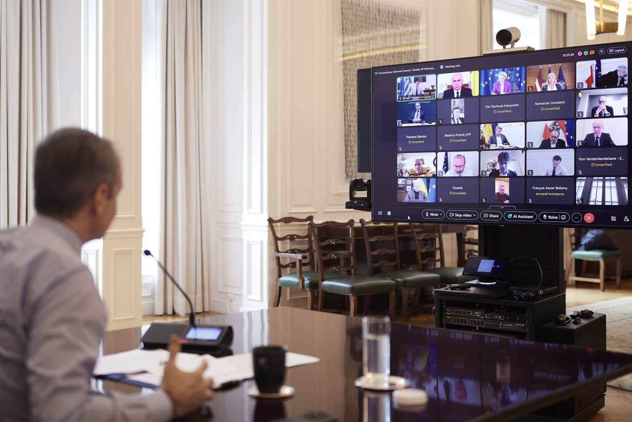 Η Ευρώπη, τόνισε ο Κυριάκος Μητσοτάκης στην τηλεδιάσκεψη, σύμφωνα με κυβερνητικές πηγές, οφείλει να μιλά με μία φωνή – στόχος που όπως παρατήρησε, δεν εξυπηρετείται από επιλεκτικά format συζήτησης ηγετών, ιδιαίτερα όταν από αυτά δεν προκύπτει ενιαία στάση για ένα τόσο σημαντικό ζήτημα.