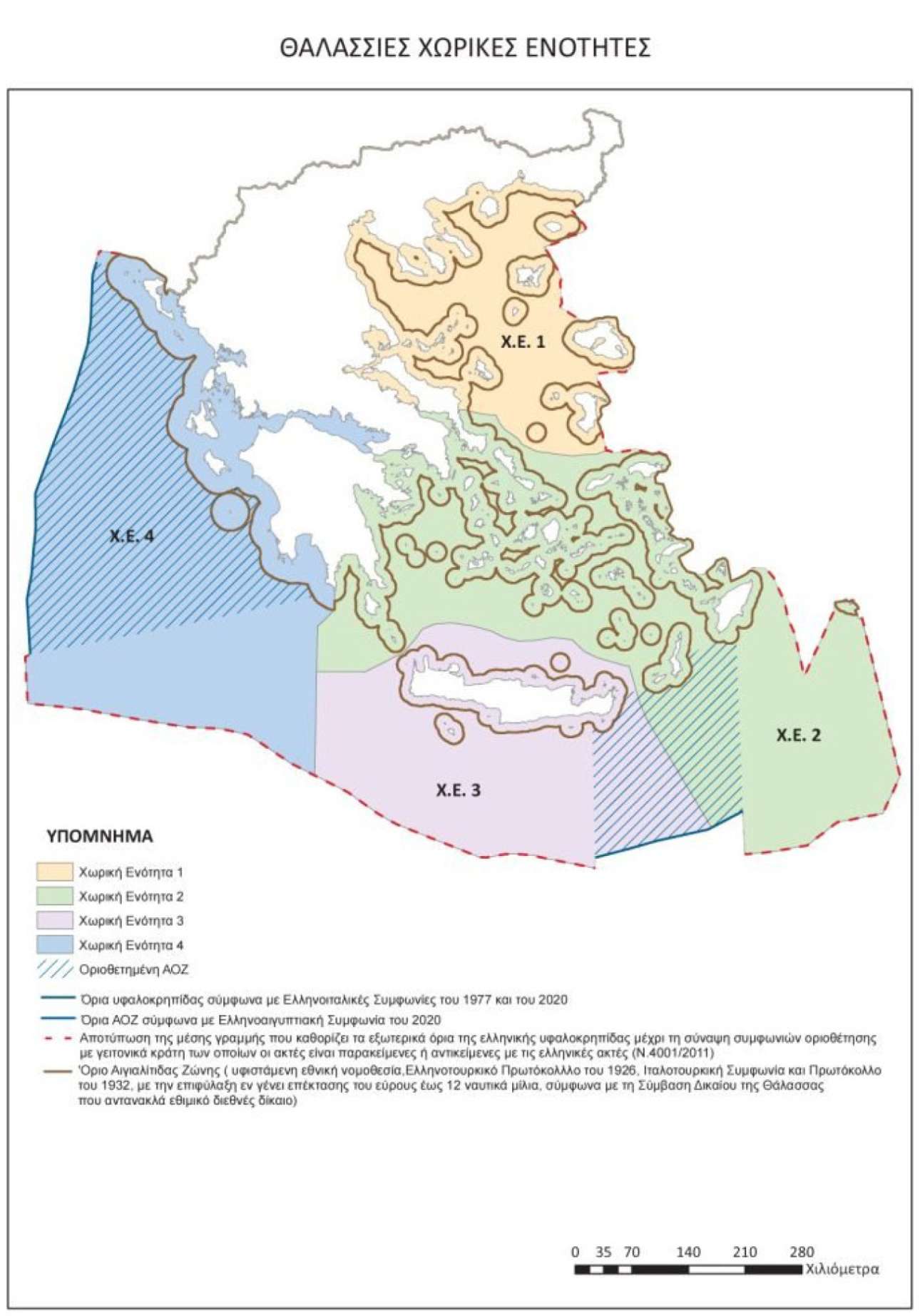 Αυτό άλλωστε ρητά αναφέρεται στον χάρτη ότι δηλαδή στα τμήματα, στα οποία δεν έχει υπάρξει διμερής οριοθέτηση, αναφέρονται τα δυνητικά όρια, σύμφωνα με τη μέση γραμμή.