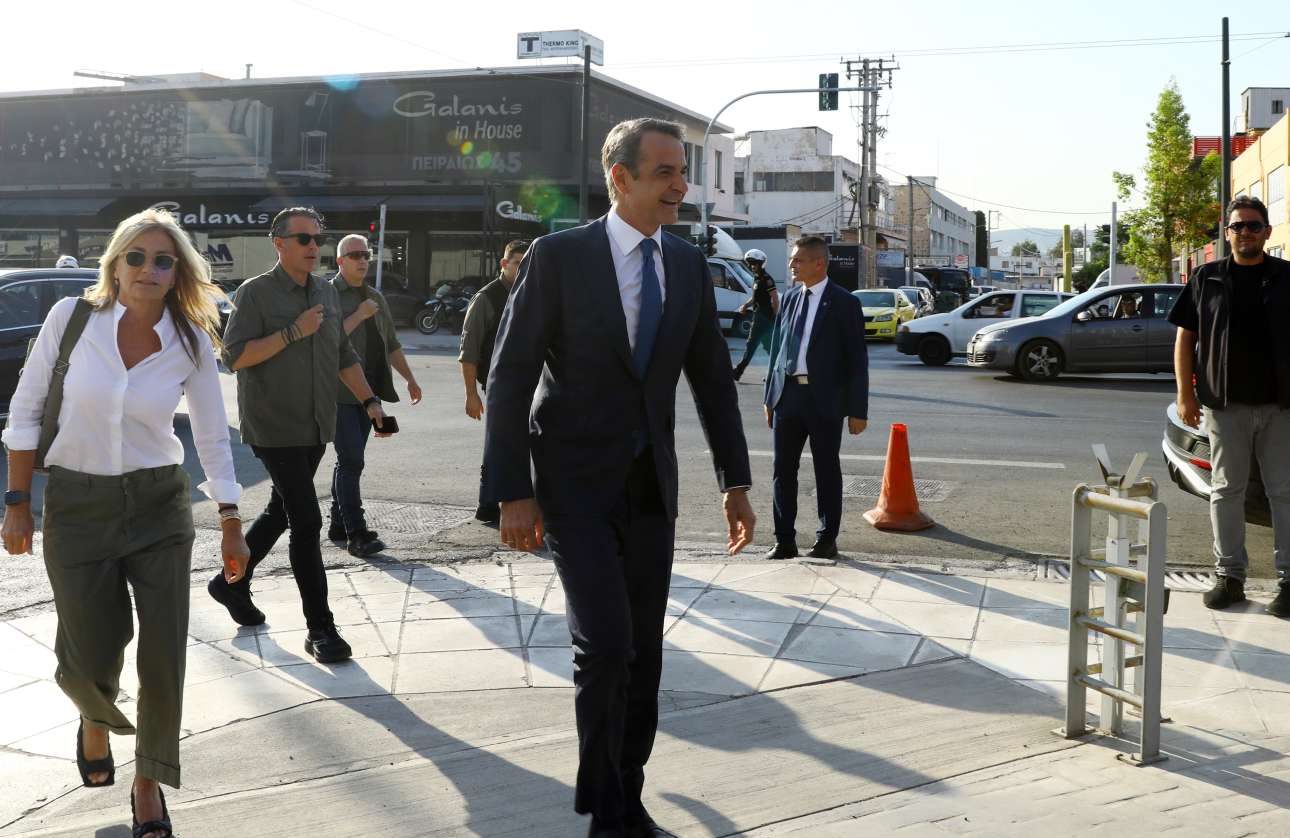 18:54 Συνοδευόμενος από τη σύζυγό του, Μαρέβα Γκραμπόφσκι, ο Πρωθυπουργός Κυριάκος Μητσοτάκης αφίχθη στην Πειραιώς, στα κεντρικά γραφεία της ΝΔ. «Κάντε λίγο υπομονή» είπε στους δημοσιογράφους ο πρόεδρος της ΝΔ.