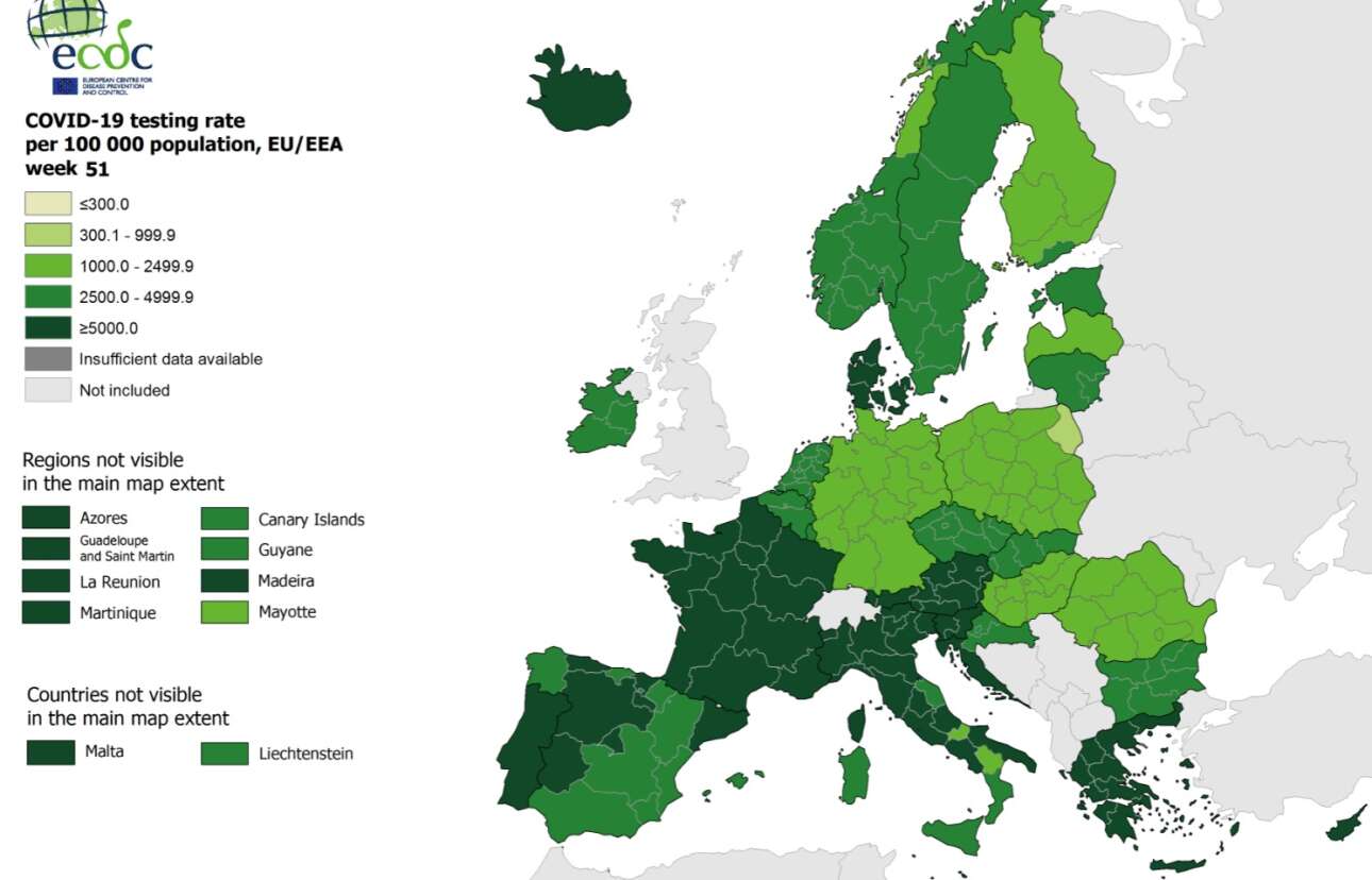 »Αυτή είναι η διαφορά μας. Και δεν είναι μόνον πολιτική», καταλήγει ο κυβερνητικός εκπρόσωπος στη δήλωσή του στην οποία επισυνάπτεται επίσης, ο χθεσινός πίνακας του Ευρωπαϊκού Κέντρου Πρόληψης και Ελέγχου Νόσων (ECDC) για τον αριθμό των τεστ (δείτε τη σχετική αποτύπωση κάτω).