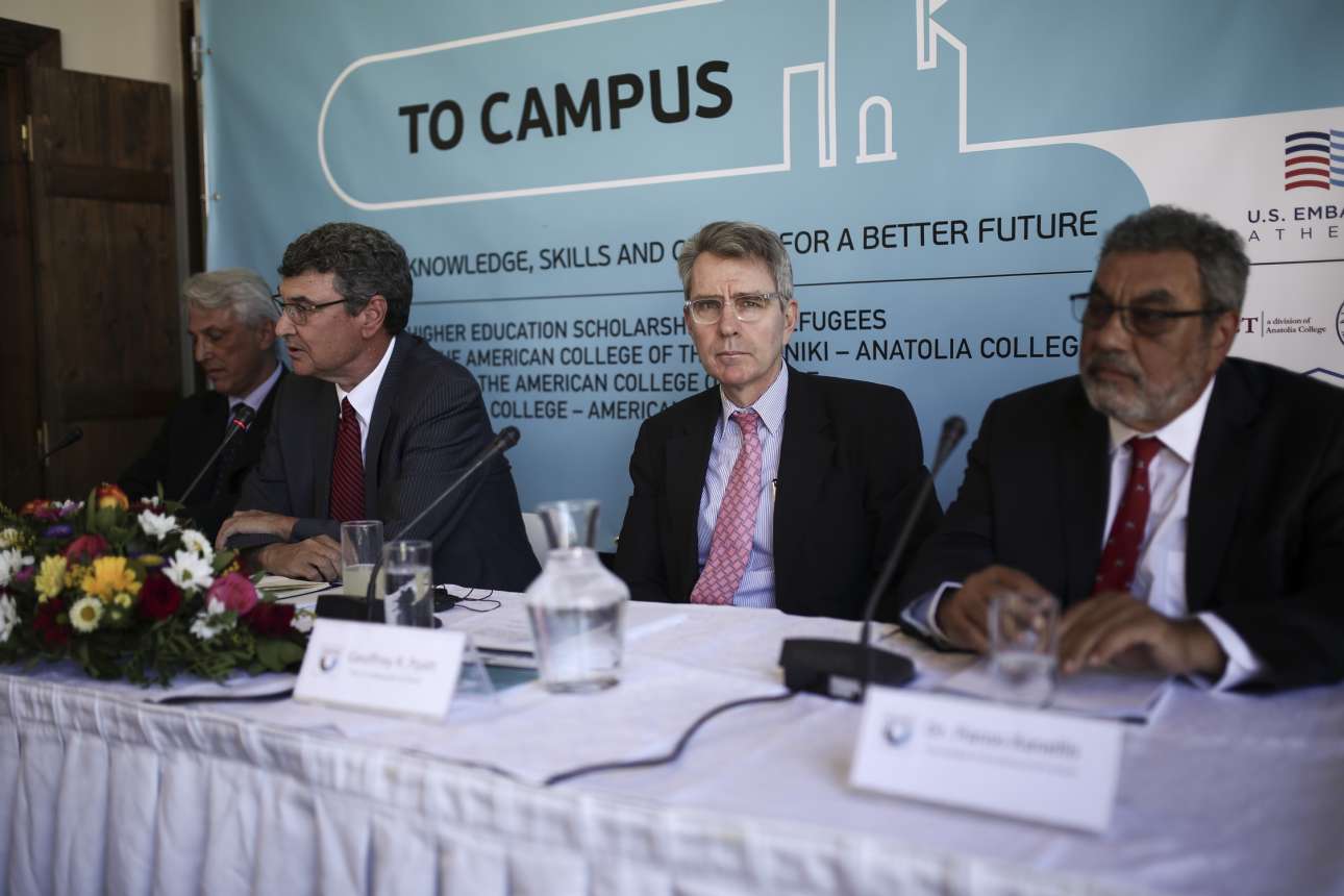 Πρώτα, λοιπόν, έλαβαν την έγκριση και τον προϋπολογισμό από την Ουάσιγκτον και ύστερα προσέγγισαν τρία αμερικανικά ιδρύματα, το Αμερικανικό Κολέγιο Θεσσαλονίκης-Anatolia College, το Deree-Αμερικανικό Κολέγιο Ελλάδος και το Perrotis College-Αμερικανική Γεωργική Σχολή, για τον σχεδιασμό ενός προγράμματος που θα έδινε την ευκαιρία -και την υποτροφία- για σπουδές σε νέους πρόσφυγες της Αθήνας και της Θεσσαλονίκης, για το ακαδημαϊκό έτος 2017 – 2018. «Και τα τρία ιδρύματα έδειξαν πολύ μεγάλο ενθουσιασμό», μάς λέει ο κ. Σνάιντερ.