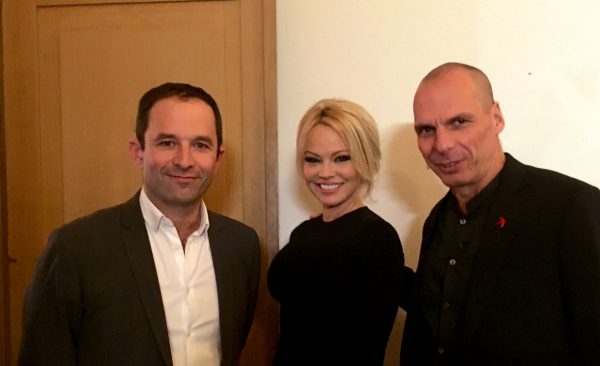 Την Κυριακή το βράδυ για παράδειγμα, σε εκδήλωση του κινήματος DiEM25 (ΜέΡΑ25, επί το ελληνικότερον) στις Βρυξέλλες, ο πρώην υπουργός Οικονομικών βρέθηκε να ποζάρει με την Πάμελα Αντερσον και τον Μπενουά Αμόν!