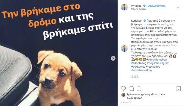 Στη σχετική του ανάρτηση, ο κ. Μητσοτάκης προέτρεπε τον κόσμο να υιοθετήσει το αδέσποτο σκυλάκι.