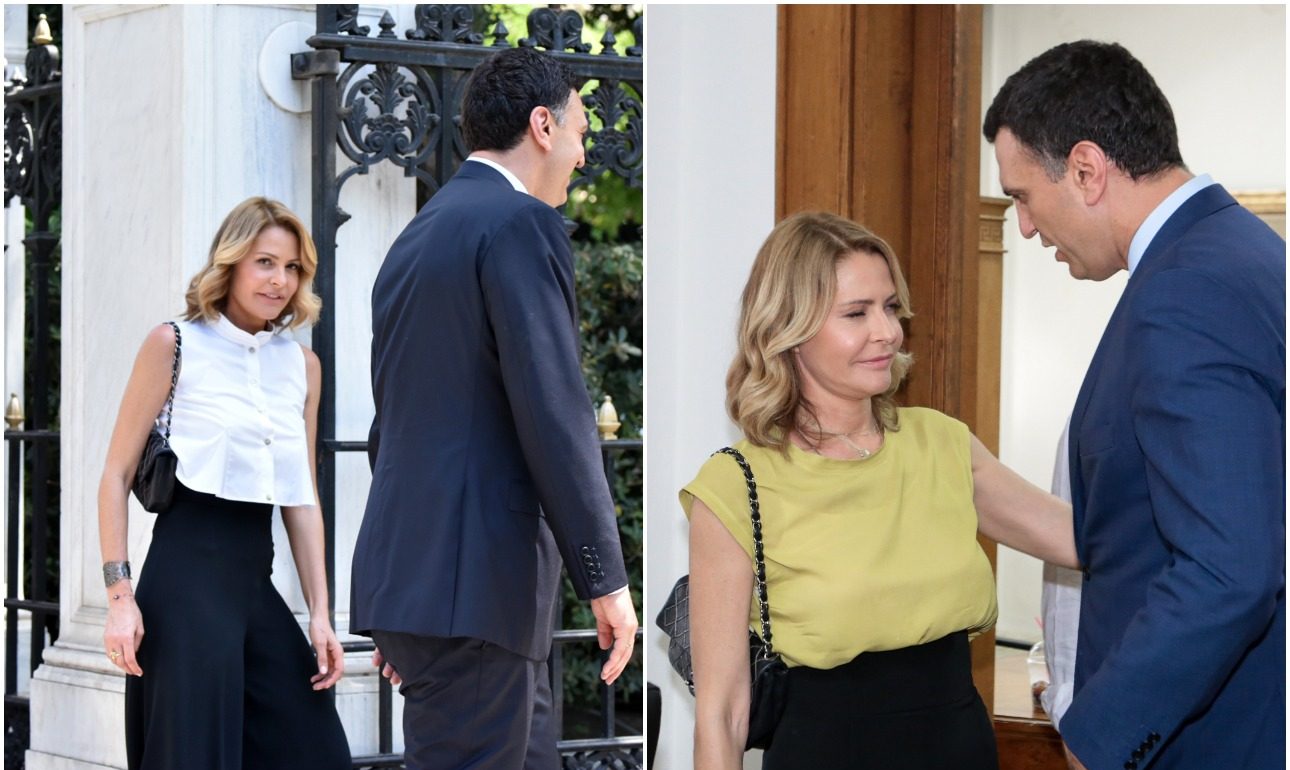 Η Τζένη Μπαλατσινού, σύζυγος του Βασίλη Κικίλια, έλαμπε κατά την προσέλευση του ζεύγους στο Προεδρικό για την τελετή ορκωμοσίας των νέων υπουργών –ο καλός της ορκίστηκε υπουργός Υγείας.