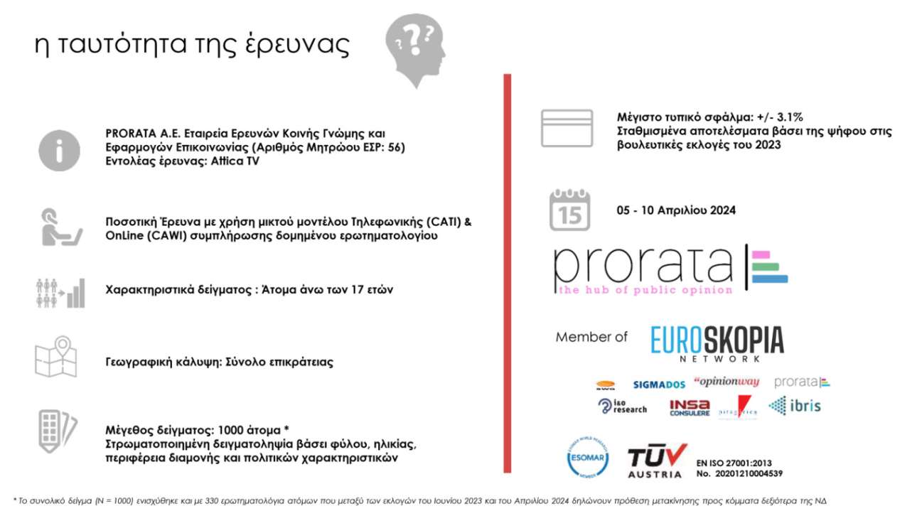 Η δημοσκόπηση διενεργήθηκε το διάστημα 5-10 Απριλίου, σύμφωνα με την ταυτότητα της έρευνας.