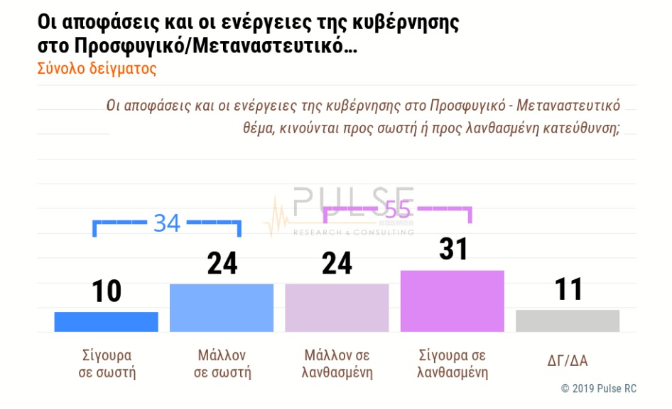 Επιφυλακτική για το προσφυγικό/ μεταναστευτικό, οι κοινή γνώμη καθώς τρεις στους 10 Έλληνες (34%) επιδοκιμάζουν την κυβερνητική πολιτική.