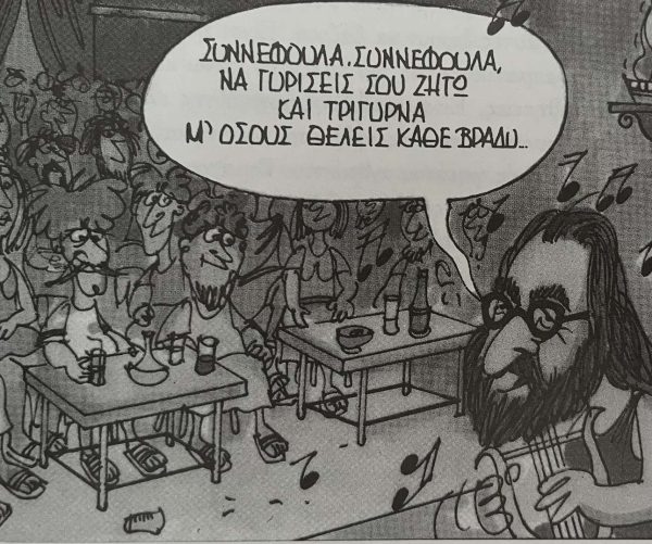 Το 1976, ύστερα από παραγγελία του Θεάτρου Τέχνης, ξεκινά να γράφει τη μουσική για τους «Αχαρνής» του Αριστοφάνη, μεταφράζοντας ο ίδιος ελεύθερα τα σημεία που θα μελοποιούσε. Η διαφωνία με το θέατρο οδήγησε στην παρουσίαση της δικής του μουσικής παράστασης με τίτλο «Ο Αριστοφάνης που Γύρισε από τα Θυμαράκια» στην μπουάτ «Ρήγας» της Πλάκας. Μαζί του τραγουδούσαν οι Σάκης Μπουλάς, Νίκος Παπάζογλου, Μανώλης Ρασούλης, Μελίνα Τανάγρη, Νίκος Ζιώγαλας, Βαγγέλης Ξύδης, Κώστας Γεωργίου και Ηλίας Λιούγκος. Ο τελευταίος γνωρίζει μάλιστα στον Ρασούλη τον γείτονά του Νίκο Ξυδάκη και προλειαίνεται το έδαφος για την «Εκδίκηση της Γυφτιάς». Οι «Αχαρνής» κυκλοφορούν σε δίσκο το 1977.