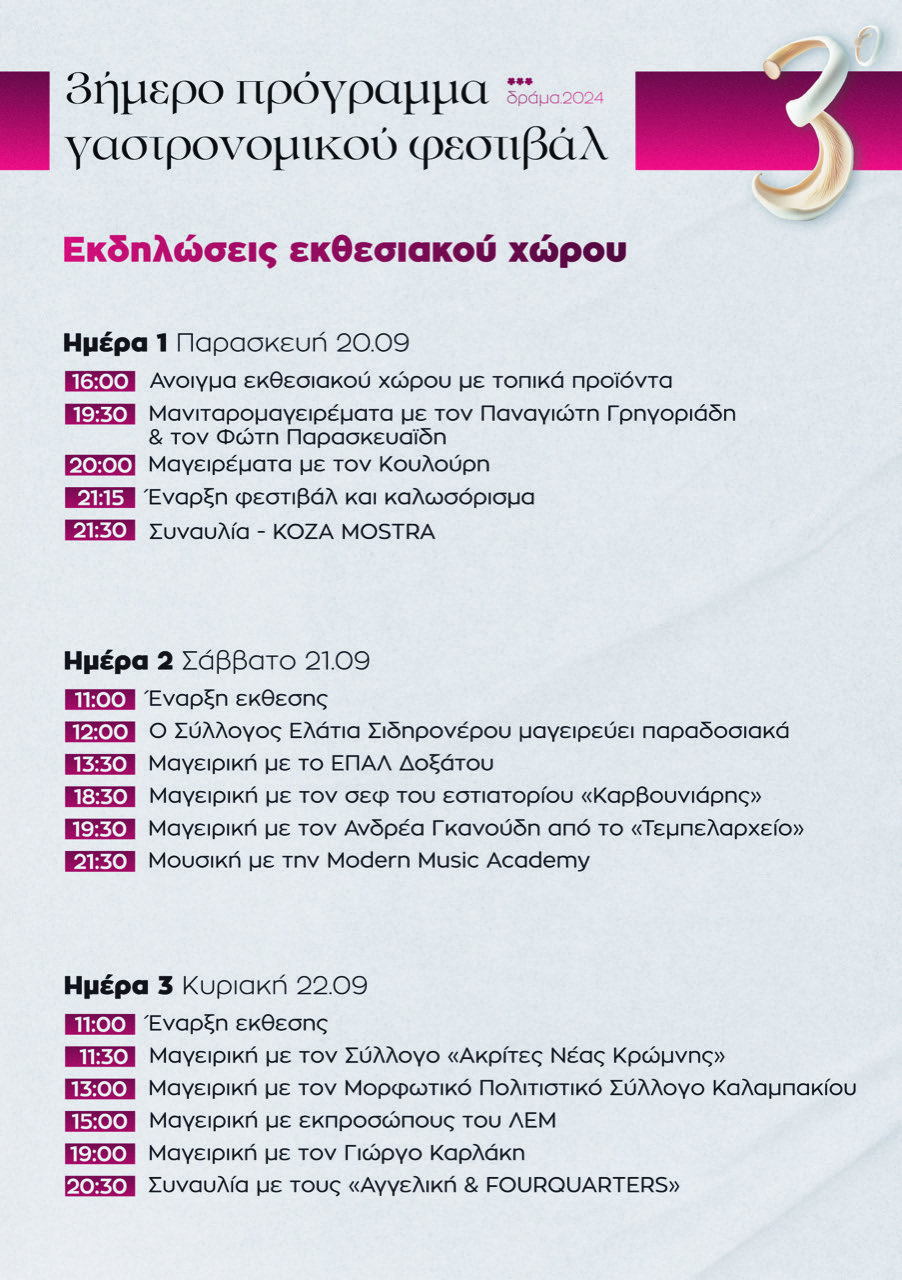 Τη διεξαγωγή του 3ου Φεστιβάλ Γαστρονομίας «Γη του Διονύσου», το οποίο θα πραγματοποιηθεί από τις 20 έως τις 22 Σεπτεμβρίου 2024, στον Δημοτικό Κήπο Δράμας, ανακοίνωσαν οι διοργανωτές της εκδήλωσης.