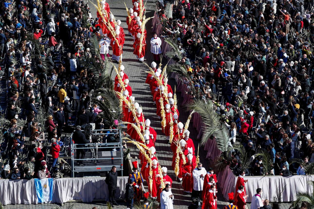 Επειτα από δυο χρόνια κατάστασης εκτάκτου ανάγκης, ο πάπας συνάντησε και πάλι τους πιστούς στην πλατεία του Αγίου Πέτρου μετά την σημερινή λειτουργία της Κυριακής των Βαΐων των Καθολικών.