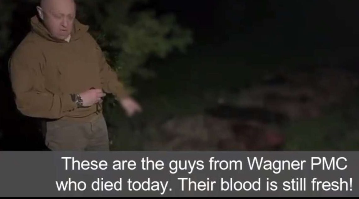 «Αυτοί είναι οι άνδρες της Βάγκνερ που σκοτώθηκαν σήμερα. Το αίμα τους είναι ακόμα ζεστό! Τράβηξέ τους όλους», ακούγεται να λέει στο βίντεο ο επικεφαλής των μισθοφόρων της παραστρατιωτικής οργάνωσης, τη θέση των οποίων –όπως λέει– στην Μπαχμούτ θα πάρουν την άλλη εβδομάδα οι δυνάμεις των ρωσικών τακτικών ενόπλων δυνάμεων.