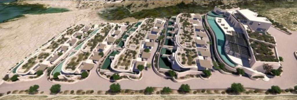 Σύμφωνα με το κατατοπιστικό ρεπορτάζ του Γιώργου Καραγιάννη στο Protothema.gr, το μοναδικό αυτό τοπίο έχει ήδη σκαφτεί προκειμένου να δημιουργηθεί -τι άλλο;- ένα ακόμα πεντάστερο ξενοδοχείο. Οι κάτοικοι του νησιού είναι φυσικά εξοργισμένοι ενώ άπαντες απορούν: ποιος έδωσε άδεια για να σκαφτούν οι κατάλευκοι, μοναδικοί ηφαιστειακοί βράχοι, επάνω στους οποίους υπάρχουν απολιθώματα εκατομμυρίων ετών;