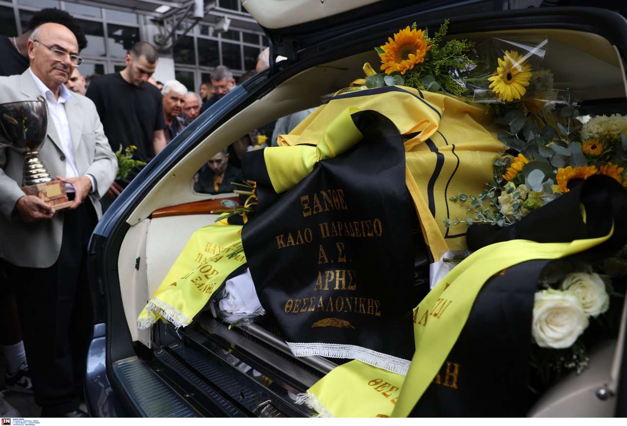 Πλήθος κόσμου, μεταξύ άλλων και ο Νίκος Γκάλης, ήταν εκεί για να πουν «αντίο» στον «ξανθό» του ελληνικού μπάσκετ. Το φέρετρο του θρυλικού έλληνα κόουτς σκέπαζε η σημαία του Aρη.