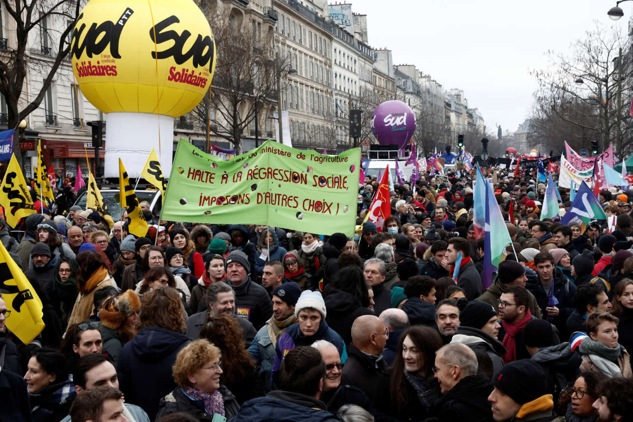 Περισσότεροι από ένα 1,1 εκατ. Γάλλοι συμμετείχαν στις διαδηλώσεις της Πέμπτης, που πραγματοποιήθηκαν σε όλη τη χώρα, κατά της αύξησης της ηλικίας συνταξιοδότησης από τα 62 στα 64 έτη, ενώ στο Παρίσι ήταν περισσότεροι από 80.000. Τα εργατικά συνδικάτα ανεβάζουν τον συνολικό αριθμό των διαδηλωτών σε δύο εκατομμύρια.