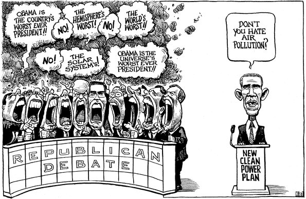 Ολοι κατηγορούν τον Μπαράκ Ομπάμα ότι είναι ο χειρότερος πρόεδρος όχι μόνο των ΗΠΑ αλλά και του σύμπαντος. Τον κατηγορούν για χίλια δύο πράγματα. Απόλυτα στωικός, ο Ομπάμα ρωτάει: «Αλήθεια, δεν απεχθάνεστε την μόλυνση του αέρα;»