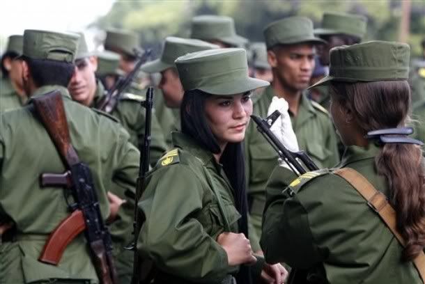 Στην Κούβα, η έλευση του Φιντέλ Κάστρο στα πράγματα άλλαξε άρδην την αντιμετώπιση που τύγχαναν οι γυναίκες με αποτέλεσμα να πέσει και το τελευταίο οχυρό. Οι γυναίκες μετέχουν σε όλες τις δράσεις του στρατού της χώρας, ακόμη και σε διεθνείς αποστολές. Μάλιστα, πολλές από αυτές κερδίζουν υψηλούς βαθμούς κοιτώντας τους άνδρες ομολόγους τους από την ίδια θέση.