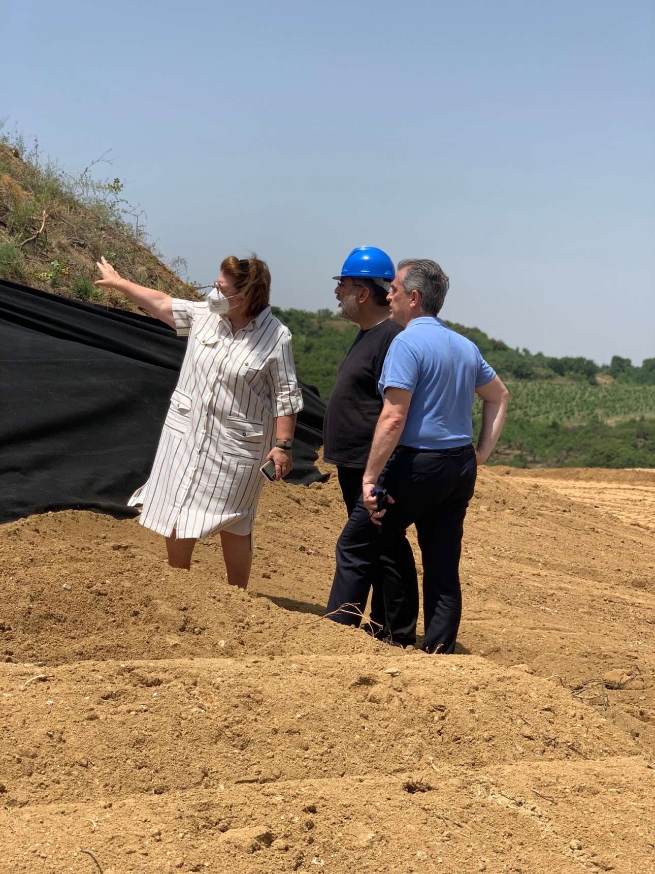 Η κυρία Μενδώνη ενημερώθηκε για τις εν εξελίξει χωματουργικές εργασίες για την αποκατάσταση της μορφής και του σχήματος του Τύμβου –ενός εξαιρετικά σημαντικού τεχνικού έργου της αρχαιότητας- οι οποίες αναμένεται να ολοκληρωθούν τον Σεπτέμβριο. Αμέσως θα ξεκινήσουν οι γεωτεχνικές εργασίες, που προβλέπουν την κατασκευή μεταλλικών κιβωτίων με ελαφροβαρή υλικά, προκειμένου να δημιουργηθούν τοίχοι αντιστήριξης.