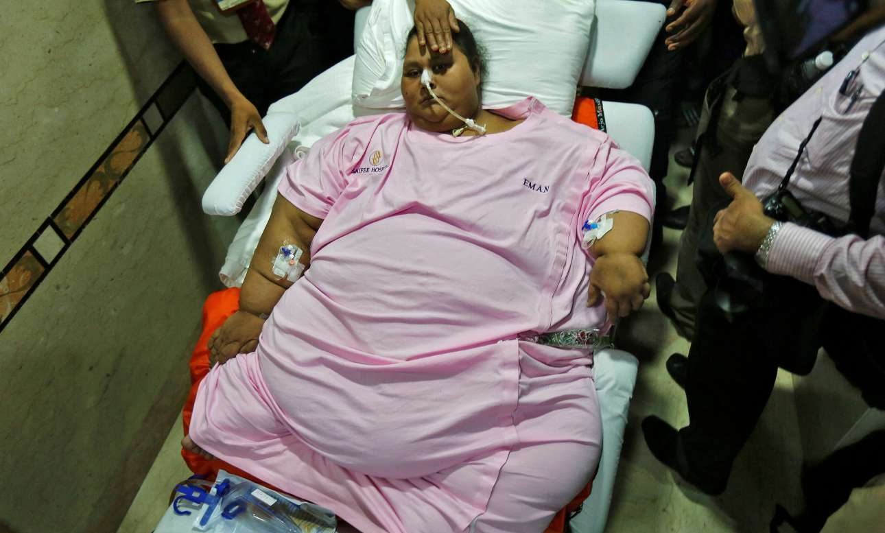 Η 36χρονη Εμάν Αχμέτ πάσχει από λεμφοίδημα, μία διαταραχή που προκαλεί πρήξιμο στον ιστό του οργανισμού. Οταν ήταν 11 ετών έπαθε εγκεφαλικό κι έκτοτε άρχισε να παίρνει πολύ βάρος. Πριν ταξιδέψει με ένα ειδικά διαμορφωμένο Airbus από το Κάιρο στη Μουμπάι για την εγχείρηση, είχε 25 χρόνια να μετακινηθεί. Ολα αυτά τα χρόνια παρέμενε στο σπίτι της, σύμφωνα με την οικογένειά της.