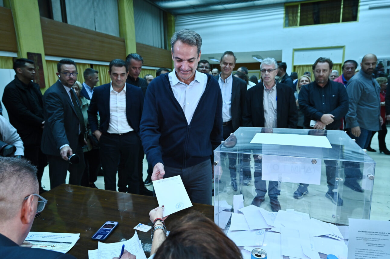 Ο Πρωθυπουργός και πρόεδρος της ΝΔ, Κυριάκος Μητσοτάκης, άσκησε το εκλογικό του δικαίωμα το απόγευμα της Κυριακής, συνοδευόμενος από τον γιο του, Κωνσταντίνο, ο οποίος επίσης ψήφισε.